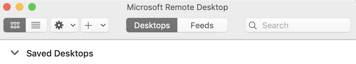 Open Microsoft Remote Desktop and select the ‘ + ‘ button from the top navigation bar (pictured below).